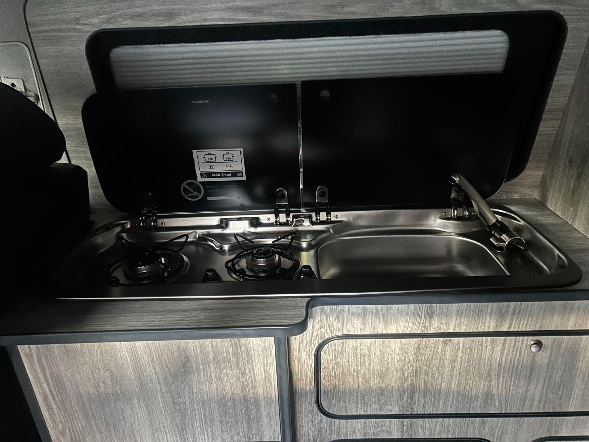 Includes Fully equipped kitchen complete with twin hob, a sink and fridge, perfect for all your on road needs.